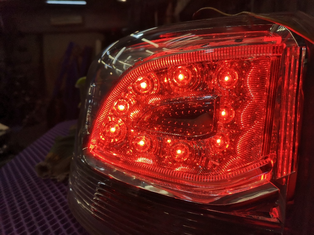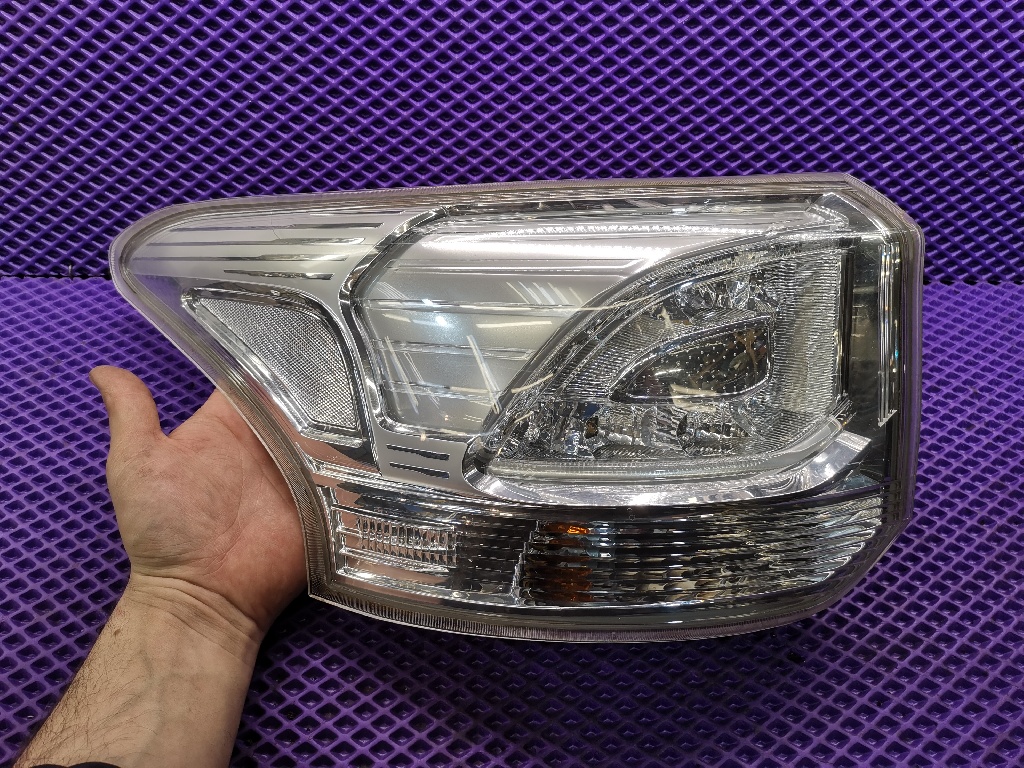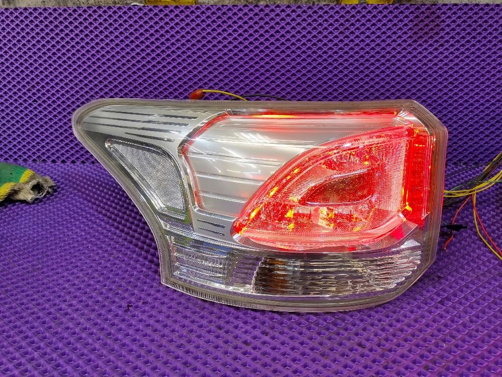 Фонарь задний левый светодиодный для Mitsubushi Outlander GF, оригинал. Все диоды горят (см видео). Трещина на крепежном пластике и внутренний скол на стекле (не видно снаружи).