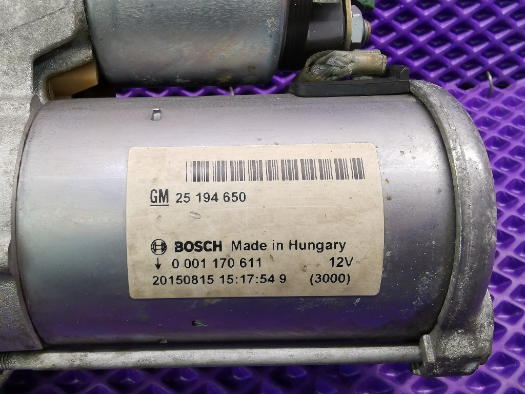 Стартер для моторов 1.4 турбо Опель Шевроле, оригинал, без пробега по РФ. 10 зубов. GM 25194650, Bosch 0001170611
